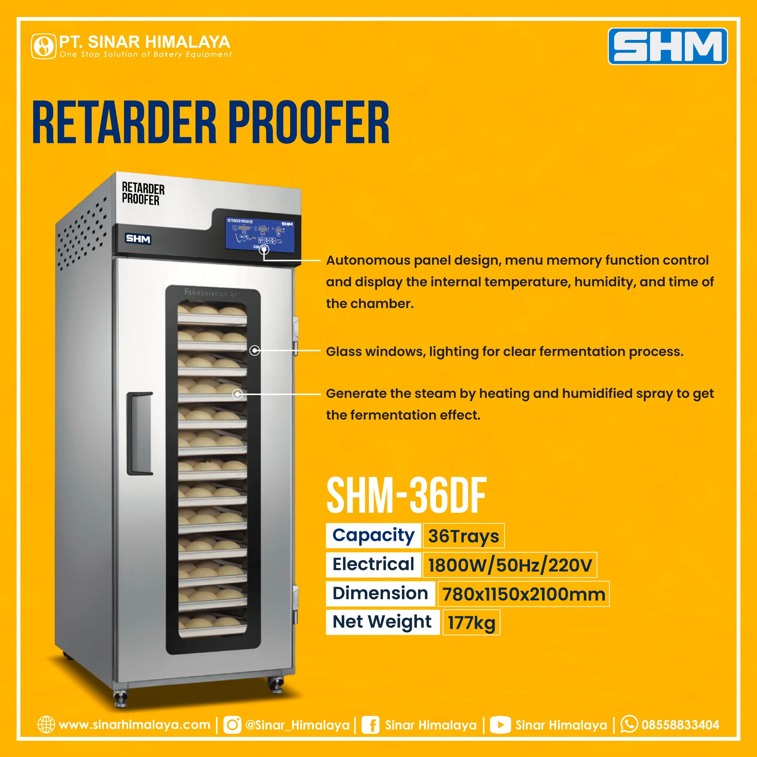 SHM-36DF Retarder Proofer, Mesin proofer adalah mesin yang digunakan untuk mengembangkan adonan roti sebelum proses baking untuk menghasilkan roti yang lezat dan bertekstur sempurna. Memiliki 1 pintu dengan kapasitas 36 trays. Mesin ini sangat cocok bagi anda yang memiliki usaha bakery karena bisa meningkatkan efisiensi produksi roti, karena adonan dapat mengembang secara serentak dalam jumlah yang lebih besar.