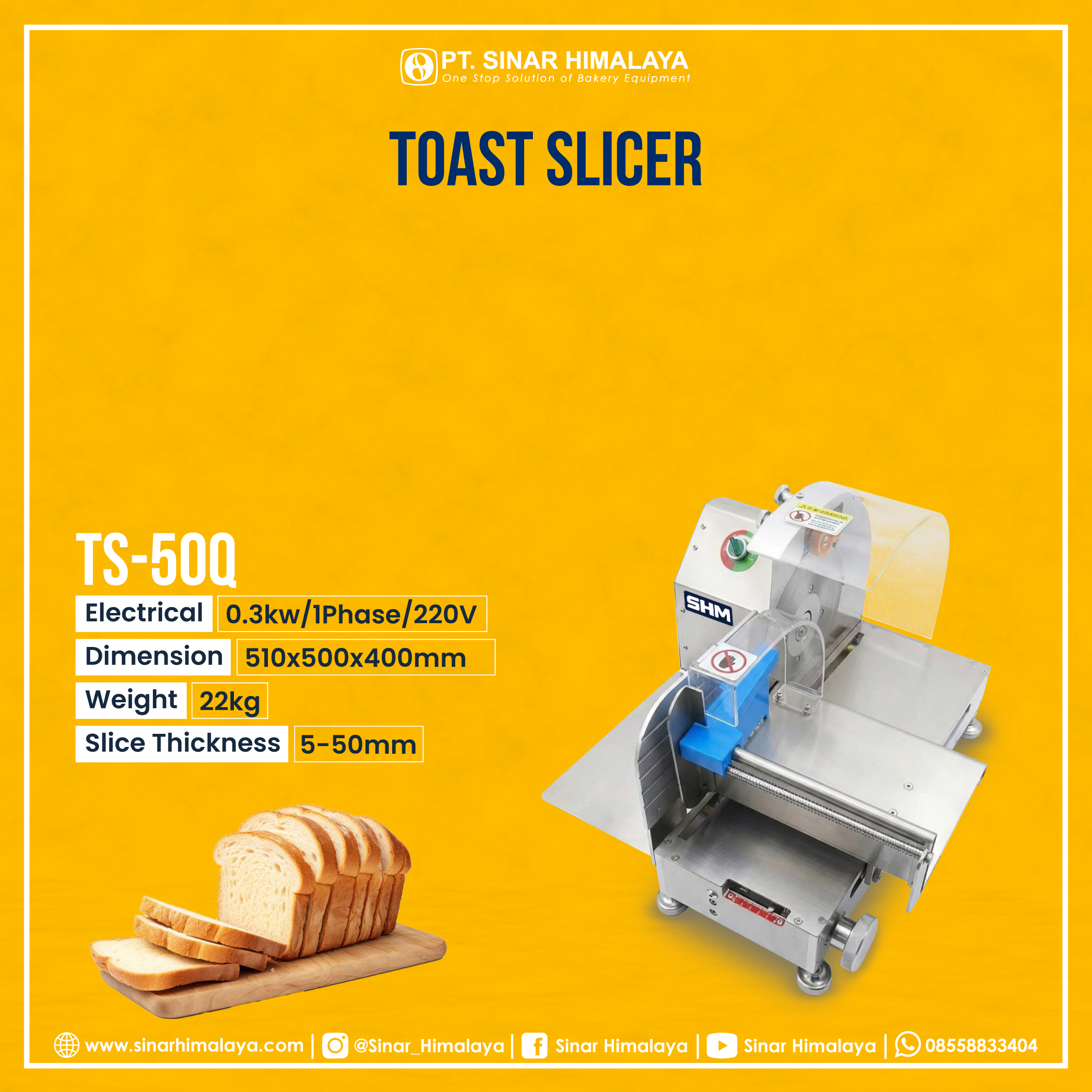 TS-50Q Toast Slicer adalah solusi tepat untuk proses pemotongan roti yang cepat, aman, dan konsisten. Dengan desain praktis dan performa stabil, mesin ini membantu usaha roti tampil lebih profesional dan siap memenuhi permintaan pasar.