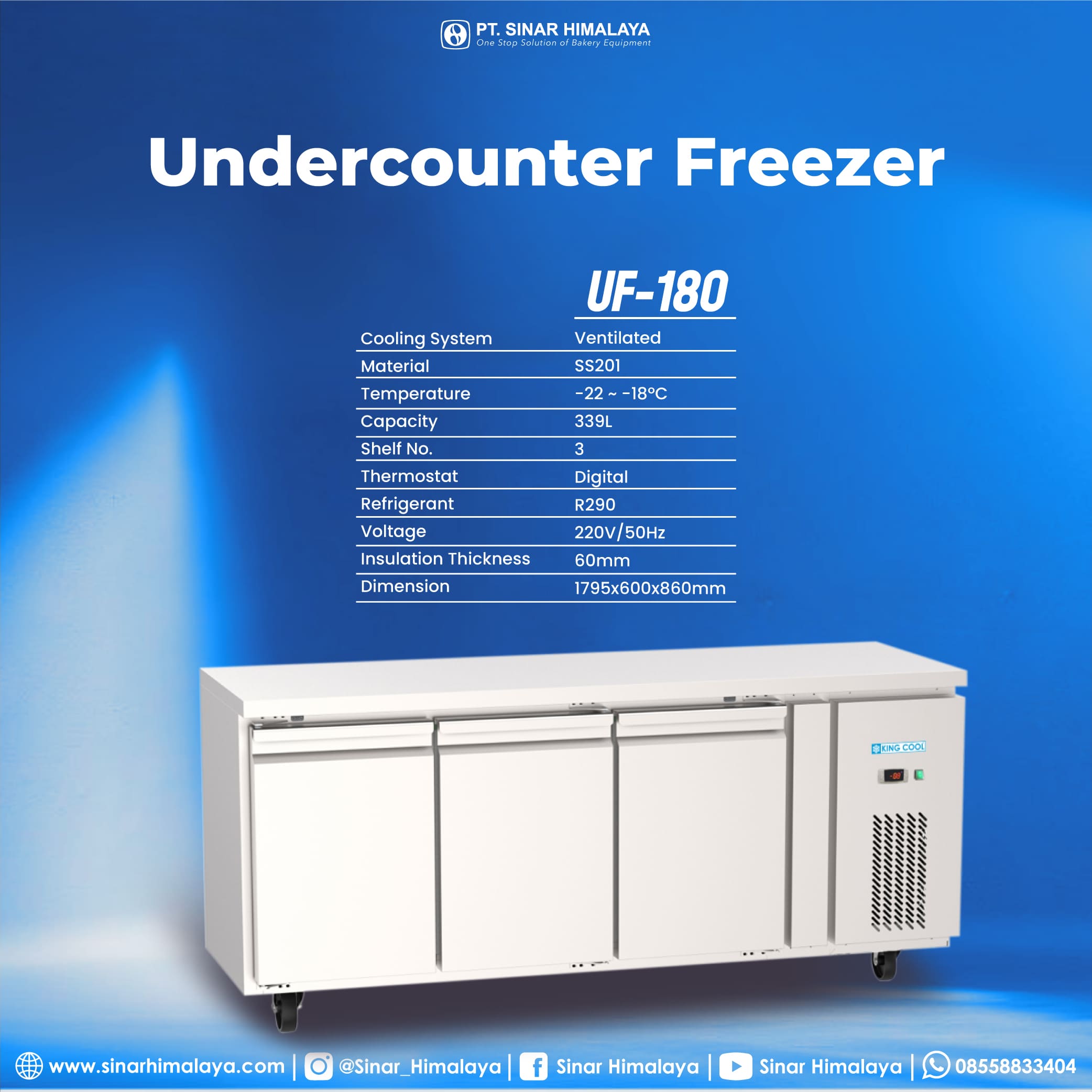 UF-180 Undercounter Freezer 3 Doors – King Cool ❄️🥶 adalah pendingin berkapasitas 339L dengan 3 pintu yang dirancang untuk penyimpanan bahan beku dalam jumlah lebih banyak namun tetap praktis karena bisa ditempatkan di bawah meja kerja. Dengan sistem ventilated cooling, suhu -22 ~ -18°C terjaga stabil di seluruh ruang sehingga cocok untuk menyimpan daging, ikan, seafood, es krim, hingga bahan makanan beku lainnya. Dibuat dari material stainless steel SS201 yang kokoh dan higienis, freezer ini dilengkapi 3 rak penyimpanan, thermostat digital untuk kontrol suhu presisi, serta menggunakan refrigerant ramah lingkungan R290 dengan insulasi tebal 60mm untuk efisiensi energi. Sangat cocok digunakan di restoran, café, hotel, catering, maupun dapur komersial besar. Bermanfaat bagi chef profesional, pengusaha kuliner, dan pelaku usaha retail yang membutuhkan kapasitas besar dengan kualitas beku terjaga secara konsisten.